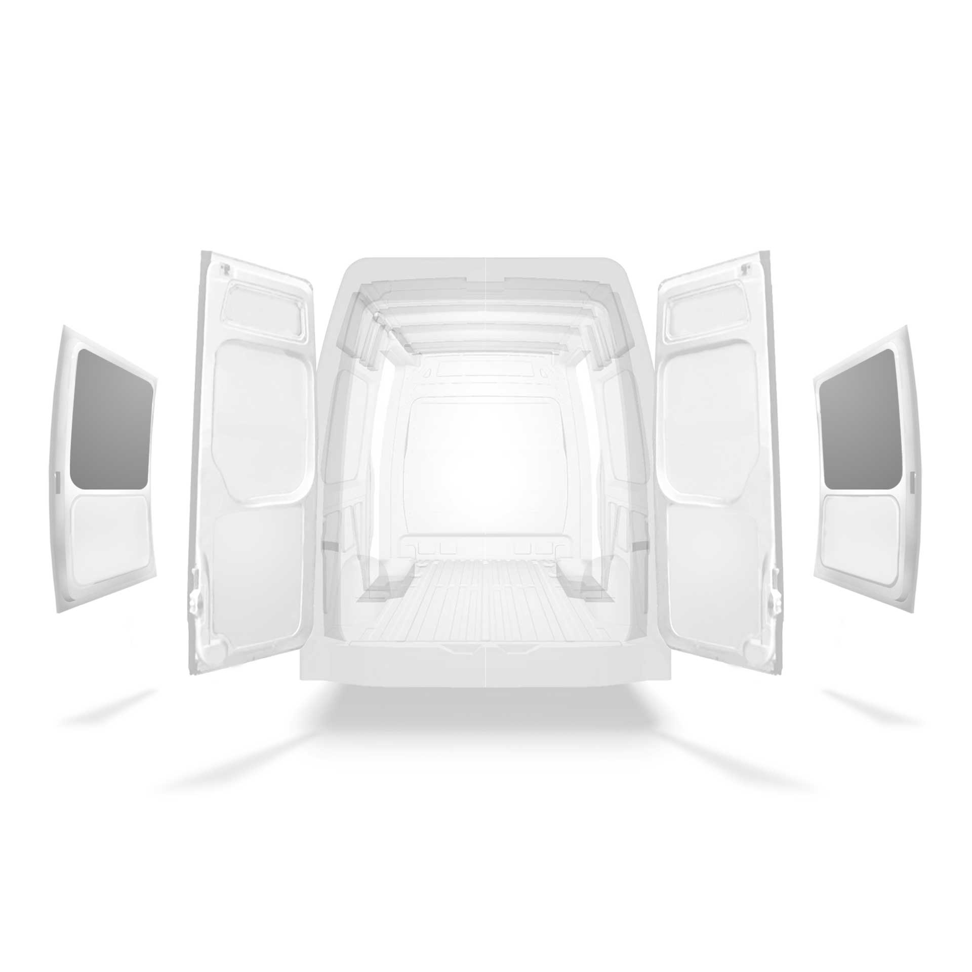 Nasze panelowe wykładziny drzwi bocznych są dostępne dla różnych rodzajów i konfiguracji drzwi dla szeregu pojazdów użytkowych. Lekkie i zaprojektowane w celu uzyskania profesjonalnego wykończenia wnętrza, wykładziny drzwi są dostępne jako wykładziny pełne zakrywające całe drzwi lub wykładziny panelowe pasujące między belkami. Wykładziny drzwi mogą być montowane nieinwazyjnie, za pomocą kleju o wysokiej przyczepności, dzięki czemu instalacja jest łatwiejsza. Możliwe jest również wykorzystanie tradycyjnej metody montażu za pomocą śrub.