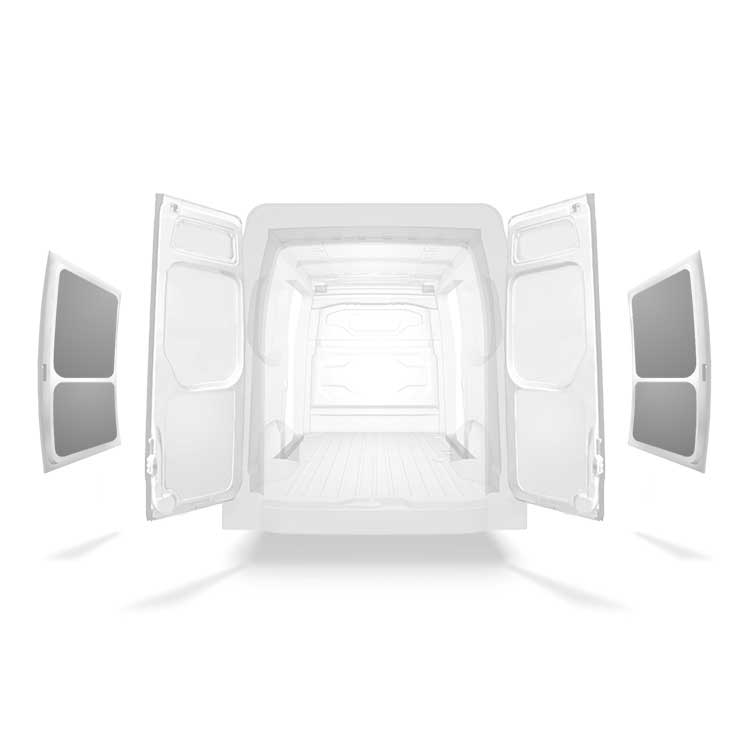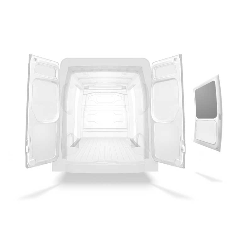 Nasze panelowe wykładziny drzwi bocznych są dostępne dla różnych rodzajów i konfiguracji drzwi dla szeregu pojazdów użytkowych. Lekkie i zaprojektowane w celu uzyskania profesjonalnego wykończenia wnętrza, wykładziny drzwi są dostępne jako wykładziny pełne zakrywające całe drzwi lub wykładziny panelowe pasujące między belkami. Wykładziny drzwi mogą być montowane nieinwazyjnie, za pomocą kleju o wysokiej przyczepności, dzięki czemu instalacja jest łatwiejsza. Możliwe jest również wykorzystanie tradycyjnej metody montażu za pomocą śrub.