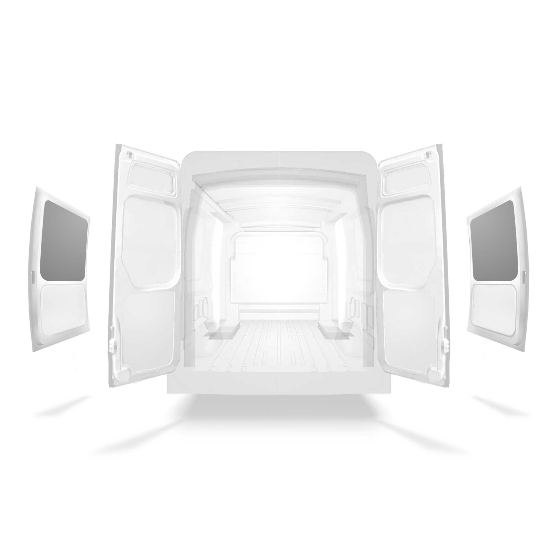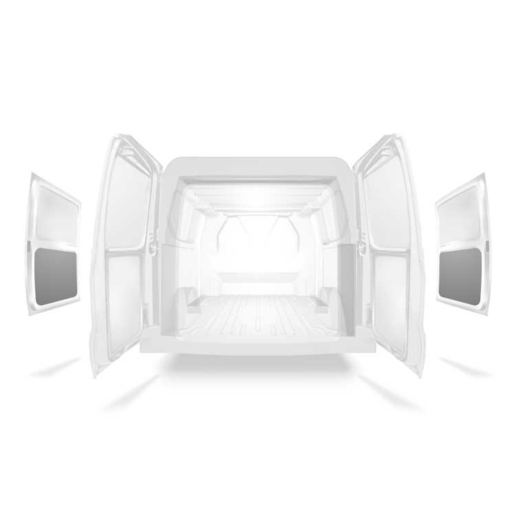 Nasze panelowe wykładziny drzwi bocznych są dostępne dla różnych rodzajów i konfiguracji drzwi dla szeregu pojazdów użytkowych. Lekkie i zaprojektowane w celu uzyskania profesjonalnego wykończenia wnętrza, wykładziny drzwi są dostępne jako wykładziny pełne zakrywające całe drzwi lub wykładziny panelowe pasujące między belkami. Wykładziny drzwi mogą być montowane nieinwazyjnie, za pomocą kleju o wysokiej przyczepności, dzięki czemu instalacja jest łatwiejsza. Możliwe jest również wykorzystanie tradycyjnej metody montażu za pomocą śrub.
