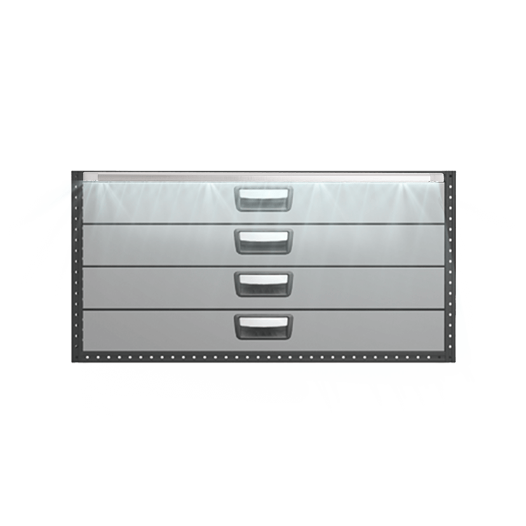 Kolumny szuflad zachowują zasadę modułowości na głębokość, szerokość i wysokość. Można je w prosty sposób łączyć z innymi produktami z asortymentu. Wbudowany w stelaże rowek teowy znajduje zastosowanie przy zabezpieczaniu ładunku i mocowaniu akcesoriów oraz umożliwia elastyczny montaż powierzchniowy. Każda szuflada wyposażona jest standardowo w prowadnice z łożyskami kulkowymi. Wyposażone w blokady szuflady można w pełni wysuwać. W celu optymalizacji wagi panele boczne oraz tablice na narzędzia są opcjonalne.
