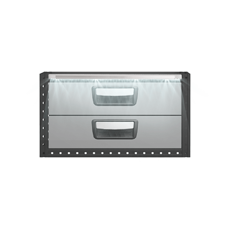 Kolumny szuflad zachowują zasadę modułowości na głębokość, szerokość i wysokość. Można je w prosty sposób łączyć z innymi produktami z asortymentu. Wbudowany w stelaże rowek teowy znajduje zastosowanie przy zabezpieczaniu ładunku i mocowaniu akcesoriów oraz umożliwia elastyczny montaż powierzchniowy. Każda szuflada wyposażona jest standardowo w prowadnice z łożyskami kulkowymi. Wyposażone w blokady szuflady można w pełni wysuwać. W celu optymalizacji wagi panele boczne oraz tablice na narzędzia są opcjonalne.