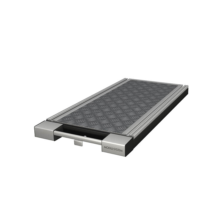 Wysuwane stelaże platform są mocowane do podłogi pojazdu i umożliwiają ładowanie i wyładunek ciężkich, masywnych przedmiotów. Prosty mechanizm zwalniający umożliwia wysunięcie stelaża platformy z pojazdu. Stelaż platformy można wysunąć na 70% jej głębokości.