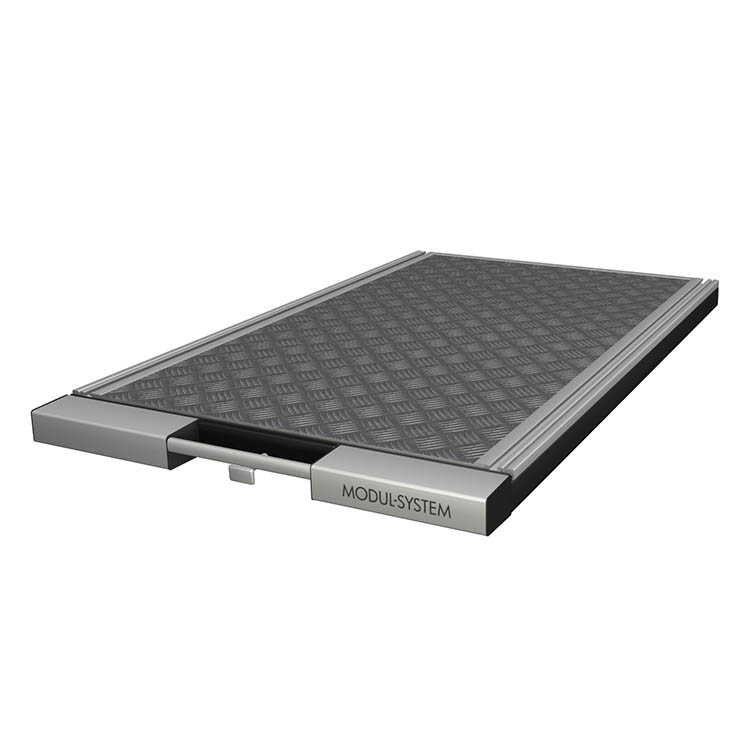 Wysuwane stelaże platform są mocowane do podłogi pojazdu i umożliwiają ładowanie i wyładunek ciężkich, masywnych przedmiotów. Prosty mechanizm zwalniający umożliwia wysunięcie stelaża platformy z pojazdu. Stelaż platformy można wysunąć na 70% jej głębokości.