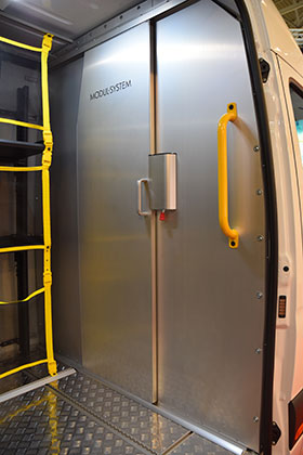 Lekka wyściółka stanowi polipropylenową konstrukcję o strukturze plastra miodu, która oszczędza prawie 40% wagi w porównaniu z tradycyjną wyściółką ze sklejki, natomiast przyklejone szyny ścienne wzmacniają korpus pojazdu, zwiększają bezpieczeństwo i umożliwiają mocowanie składanych półek i przyłączenie do nich elementów.