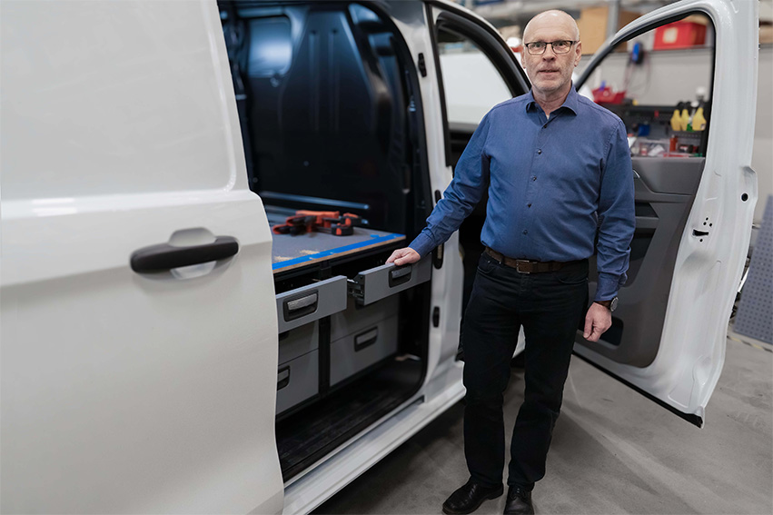 Anders Carlsson, dyrektor techniczny w Modul-System, zajmuje się rozwojem produktów motoryzacyjnych od początku lat 90. i pracuje w Modul-System od 2000 roku. Dzięki wieloletniemu doświadczeniu w zakresie wnętrz pojazdów i inżynierii specjalizuje się w opracowywaniu trwałych, lekkich i zrównoważonych rozwiązań regałowych dla pojazdów użytkowych.