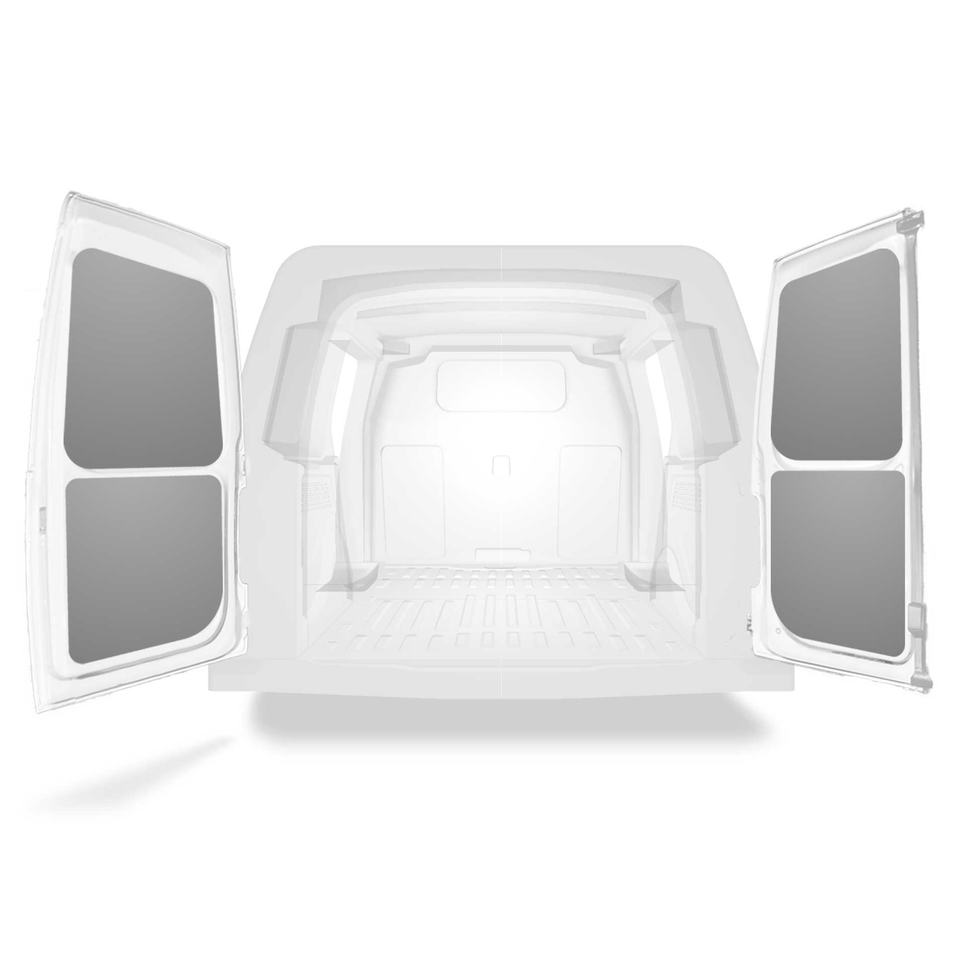 Fabrycznie wycięte okładziny tylnych drzwi samochodu dostawczego są dopasowane do sekcji bliźniaczych drzwi pojazdu.