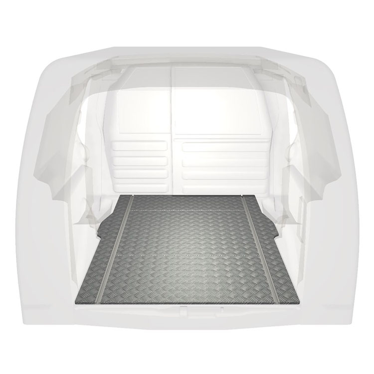 Lekkie i solidne standardowe podłogi do samochodów dostawczych Citroën Berlingo/Peugeot Partner wyposażone w antypoślizgową aluminiową blachę ryflowaną i szyny na ładunek (wzdłużne) umożliwiające szybki i bezpieczny montaż systemów regałowych oraz innych akcesoriów.