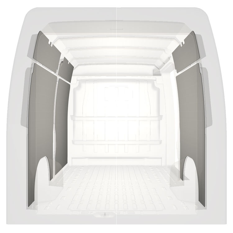 W celu optymalizacji masy, wycięte fabrycznie okładziny do samochodów dostawczych są dopasowane do przestrzeni między belkami pojazdu, co zapewnia ich nieinwazyjność oraz pozwala zmaksymalizować dostępną przestrzeń.