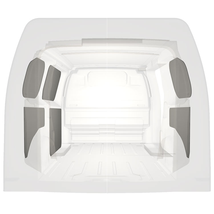 W celu optymalizacji masy, wycięte fabrycznie okładziny do samochodów dostawczych są dopasowane do przestrzeni między belkami pojazdu, co zapewnia ich nieinwazyjność oraz pozwala zmaksymalizować dostępną przestrzeń.