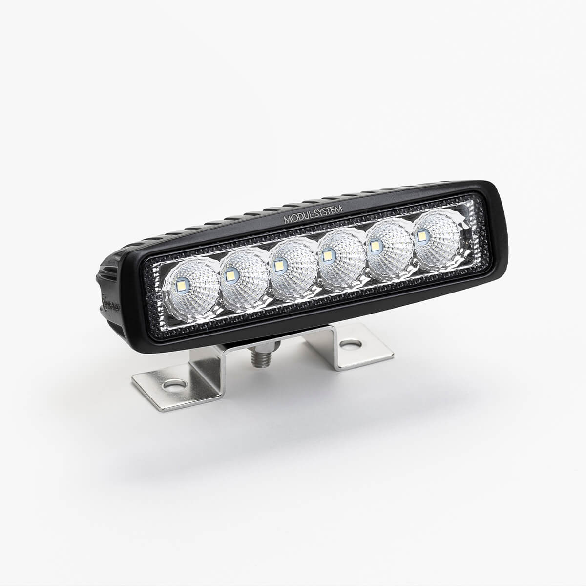 Work light with six individual LEDs, which will provide a white light. It comes with a pre-mounted bracket for easy installation to the vehicle. Thanks to IP67 classification, the light is also suitable for outdoor use. The product is E marked.