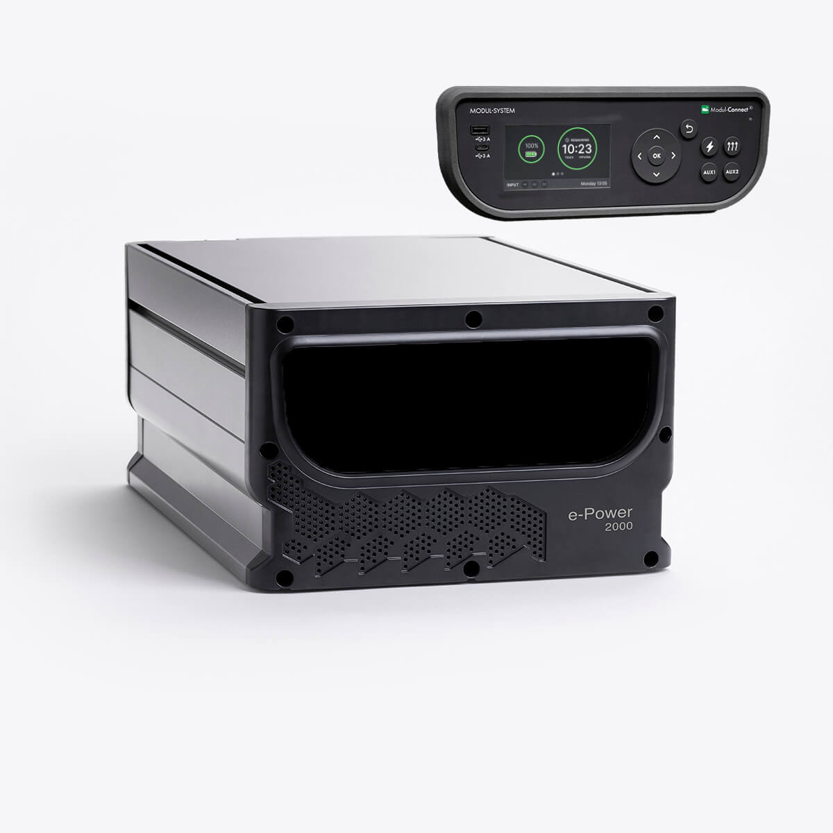 The e-Power 2000 with Remote Display is an auxiliary battery that doubles as a control unit, making it effortless to manage your heater and inverter. It ensures your mobile workspace is always ready with reliable extra power.