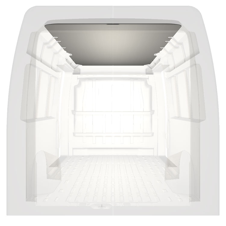 Lekka okładzina dachowa do modeli Citroën Jumper / Peugeot Boxer / Fiat Ducato. Okładzina dachowa tworzy jasne, profesjonalne wykończenie wnętrza oraz przyjemne miejsce pracy.