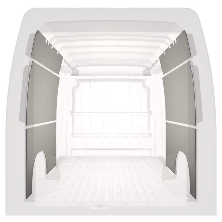 W celu optymalizacji masy, wycięte fabrycznie okładziny do samochodów dostawczych są dopasowane do przestrzeni między belkami pojazdu, co zapewnia ich nieinwazyjność oraz pozwala zmaksymalizować dostępną przestrzeń.