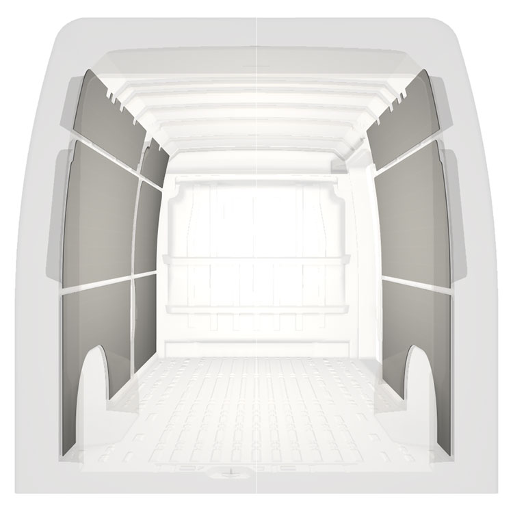W celu optymalizacji masy, wycięte fabrycznie okładziny do samochodów dostawczych są dopasowane do przestrzeni między belkami pojazdu, co zapewnia ich nieinwazyjność oraz pozwala zmaksymalizować dostępną przestrzeń.