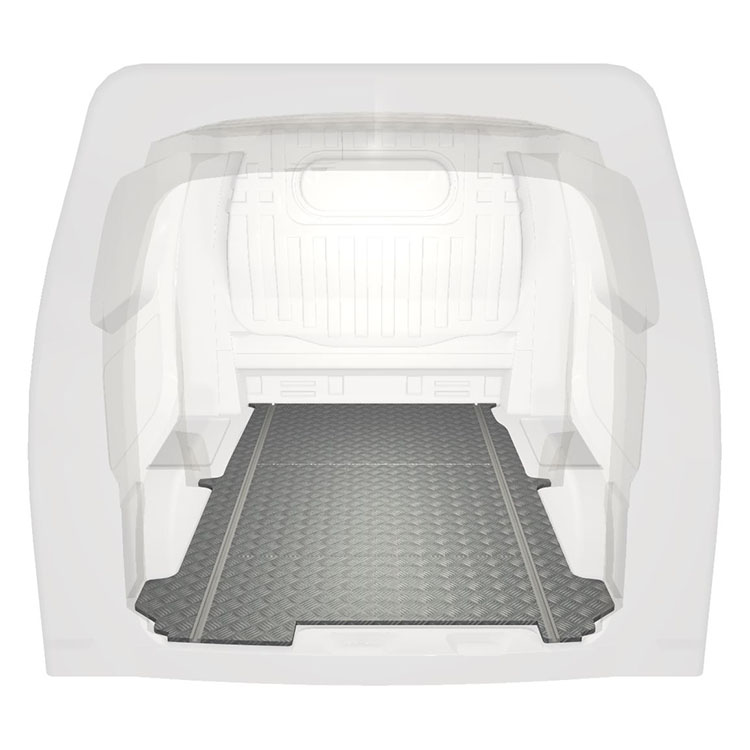 Lekkie i solidne standardowe podłogi do samochodów dostawczych Nissan NV200 wyposażone w antypoślizgową aluminiową blachę ryflowaną i szyny na ładunek (wzdłużne) umożliwiające szybki i bezpieczny montaż systemów regałowych oraz innych akcesoriów.