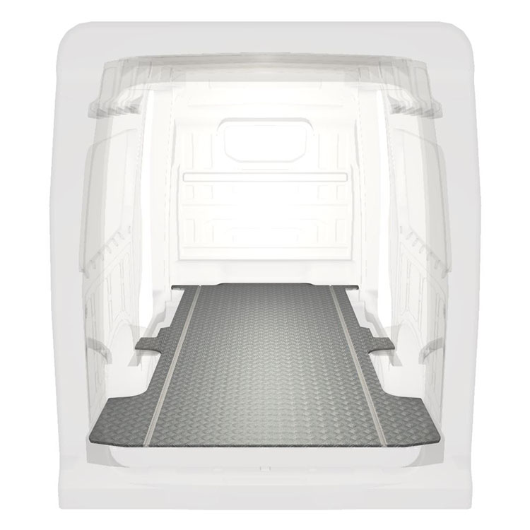 Lekkie i solidne, bardzo długie podłogi do samochodów dostawczych Volkswagen Crafter / MAN TGE wyposażone w antypoślizgową aluminiową blachę ryflowaną i szyny na ładunek (wzdłużne) umożliwiające szybki i bezpieczny montaż systemów regałowych oraz innych akcesoriów.