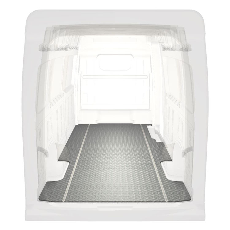 Lekkie i solidne, bardzo długie podłogi do samochodów dostawczych Volkswagen Crafter / MAN TGE wyposażone w antypoślizgową aluminiową blachę ryflowaną i szyny na ładunek (wzdłużne) umożliwiające szybki i bezpieczny montaż systemów regałowych oraz innych akcesoriów.