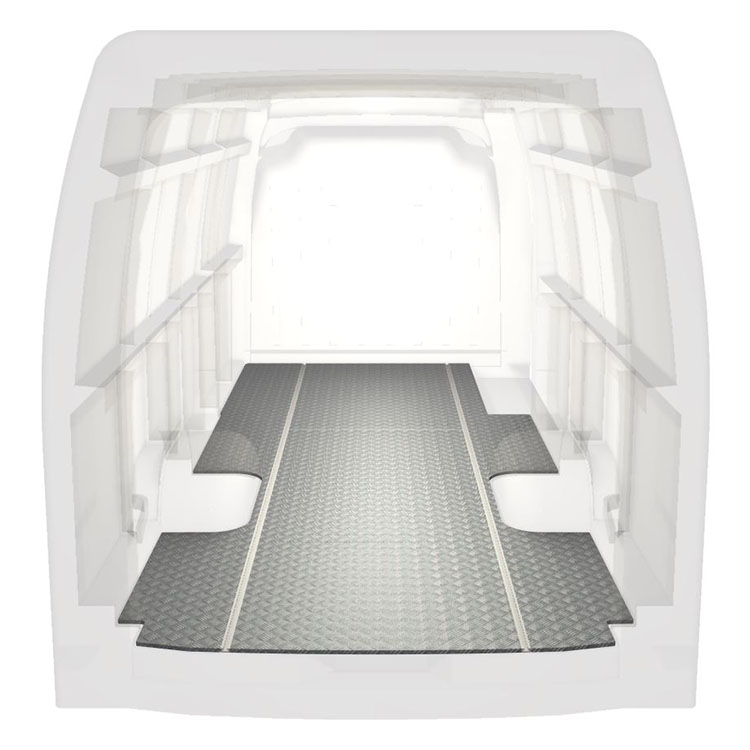 Lekkie i solidne, bardzo długie podłogi do samochodów dostawczych Renault Master / Opel Movano / Nissan NV400 wyposażone w antypoślizgową aluminiową blachę ryflowaną i szyny na ładunek (wzdłużne) umożliwiające szybki i bezpieczny montaż systemów regałowych oraz innych akcesoriów.