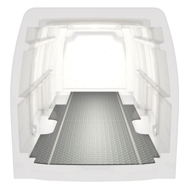 Lekkie i solidne, bardzo długie podłogi do samochodów dostawczych Renault Master / Opel Movano / Nissan NV400 wyposażone w antypoślizgową aluminiową blachę ryflowaną i szyny na ładunek (wzdłużne) umożliwiające szybki i bezpieczny montaż systemów regałowych oraz innych akcesoriów.