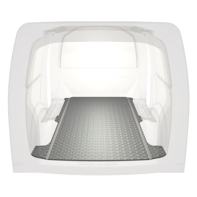 Lekkie i solidne, bardzo długie podłogi do samochodów dostawczych Volkswagen Transporter T6 wyposażone w antypoślizgową aluminiową blachę ryflowaną i szyny na ładunek (wzdłużne) umożliwiające szybki i bezpieczny montaż systemów regałowych oraz innych akcesoriów.