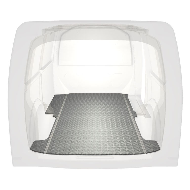 Lekkie i solidne, bardzo długie podłogi do samochodów dostawczych Volkswagen Transporter T6 wyposażone w antypoślizgową aluminiową blachę ryflowaną i szyny na ładunek (wzdłużne) umożliwiające szybki i bezpieczny montaż systemów regałowych oraz innych akcesoriów.