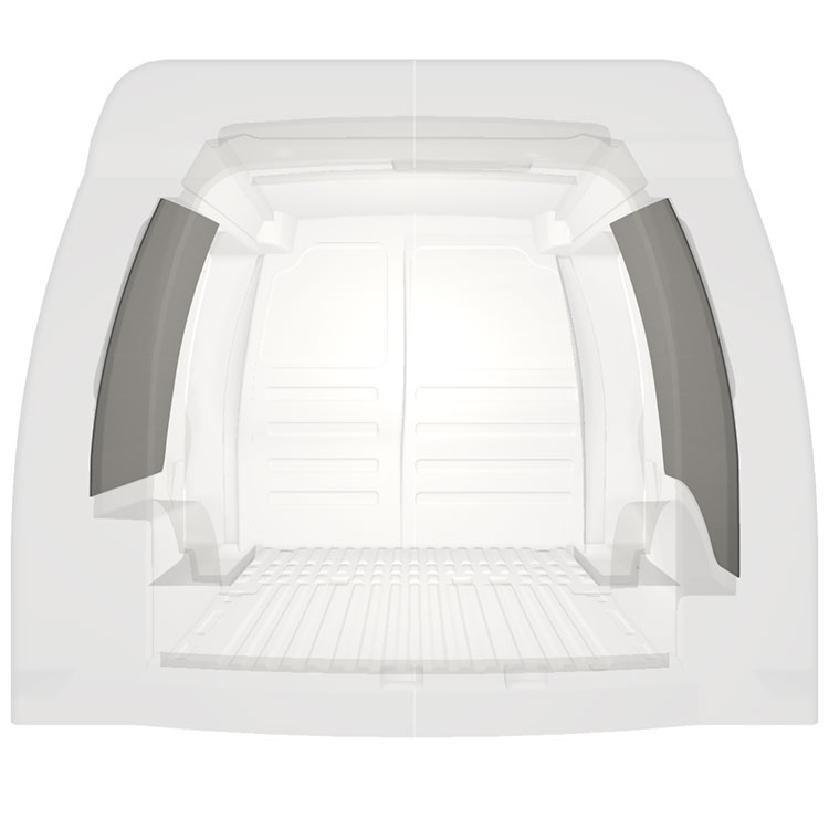 W celu optymalizacji masy, wycięte fabrycznie okładziny do samochodów dostawczych są dopasowane do przestrzeni między belkami pojazdu, co zapewnia ich nieinwazyjność oraz pozwala zmaksymalizować dostępną przestrzeń.