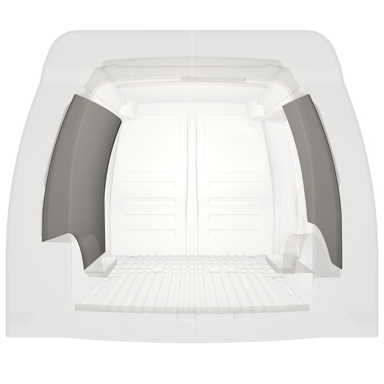 W celu optymalizacji masy, wycięte fabrycznie okładziny do samochodów dostawczych są dopasowane do przestrzeni między belkami pojazdu, co zapewnia ich nieinwazyjność oraz pozwala zmaksymalizować dostępną przestrzeń.
