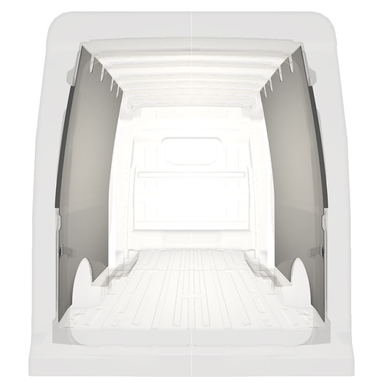 W celu optymalizacji masy, wycięte fabrycznie okładziny do samochodów dostawczych są dopasowane do przestrzeni między belkami pojazdu, co zapewnia ich nieinwazyjność oraz pozwala zmaksymalizować dostępną przestrzeń.
