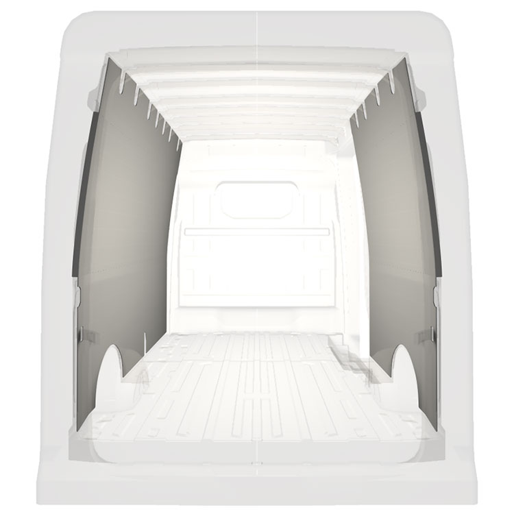 W celu optymalizacji masy, wycięte fabrycznie okładziny do samochodów dostawczych są dopasowane do przestrzeni między belkami pojazdu, co zapewnia ich nieinwazyjność oraz pozwala zmaksymalizować dostępną przestrzeń.