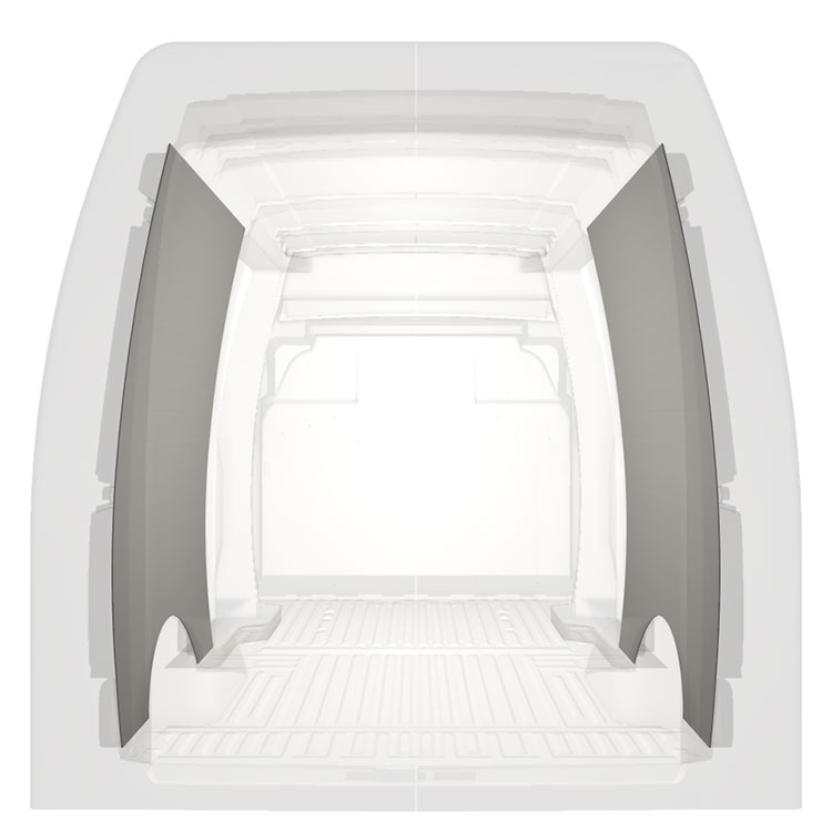 W celu optymalizacji masy, wycięte fabrycznie okładziny do samochodów dostawczych są dopasowane do przestrzeni między belkami pojazdu, co zapewnia ich nieinwazyjność oraz pozwala zmaksymalizować dostępną przestrzeń.