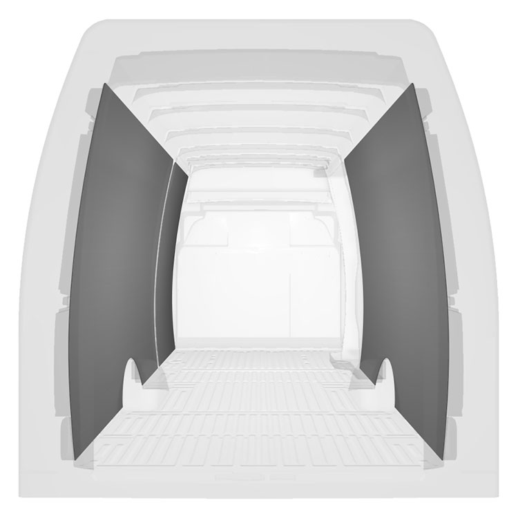 W celu optymalizacji masy, wycięte fabrycznie okładziny do samochodów dostawczych są dopasowane do przestrzeni między belkami pojazdu, co zapewnia ich nieinwazyjność oraz pozwala zmaksymalizować dostępną przestrzeń.