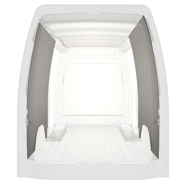 W celu optymalizacji masy, wycięte fabrycznie okładziny do samochodów dostawczych są dopasowane do przestrzeni między belkami pojazdu, co zapewnia ich nieinwazyjność oraz pozwala zmaksymalizować dostępną przestrzeń.