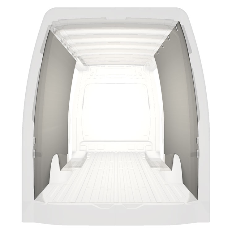 W celu optymalizacji masy, wycięte fabrycznie okładziny do samochodów dostawczych są dopasowane do przestrzeni między belkami pojazdu, co zapewnia ich nieinwazyjność oraz pozwala zmaksymalizować dostępną przestrzeń.