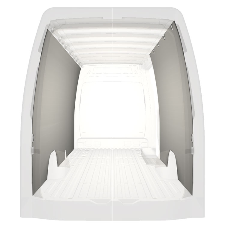 W celu optymalizacji masy, wycięte fabrycznie okładziny do samochodów dostawczych są dopasowane do przestrzeni między belkami pojazdu, co zapewnia ich nieinwazyjność oraz pozwala zmaksymalizować dostępną przestrzeń.