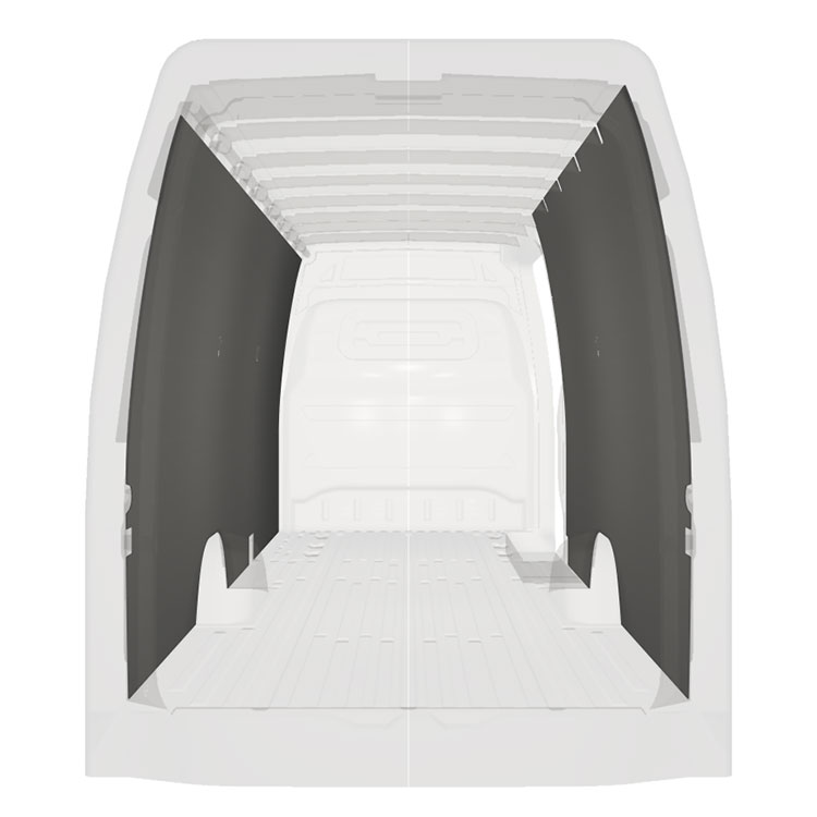 W celu optymalizacji masy, wycięte fabrycznie okładziny do samochodów dostawczych są dopasowane do przestrzeni między belkami pojazdu, co zapewnia ich nieinwazyjność oraz pozwala zmaksymalizować dostępną przestrzeń.