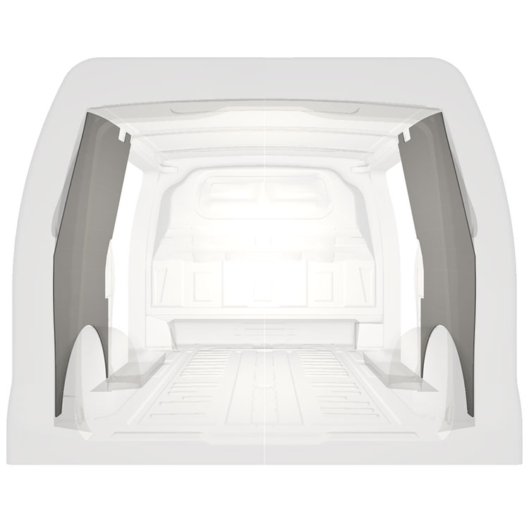 W celu optymalizacji masy, wycięte fabrycznie okładziny do samochodów dostawczych są dopasowane do przestrzeni między belkami pojazdu, co zapewnia ich nieinwazyjność oraz pozwala zmaksymalizować dostępną przestrzeń.