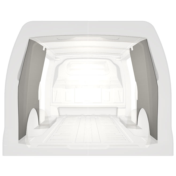 W celu optymalizacji masy, wycięte fabrycznie okładziny do samochodów dostawczych są dopasowane do przestrzeni między belkami pojazdu, co zapewnia ich nieinwazyjność oraz pozwala zmaksymalizować dostępną przestrzeń.