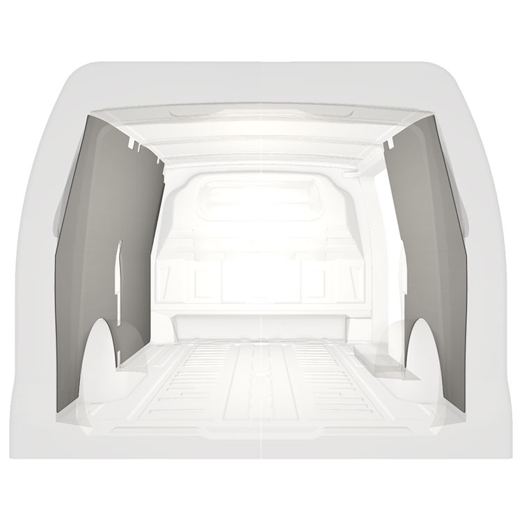 W celu optymalizacji masy, wycięte fabrycznie okładziny do samochodów dostawczych są dopasowane do przestrzeni między belkami pojazdu, co zapewnia ich nieinwazyjność oraz pozwala zmaksymalizować dostępną przestrzeń.