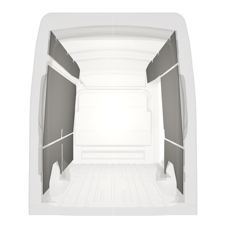 W celu optymalizacji masy, wycięte fabrycznie okładziny do samochodów dostawczych są dopasowane do przestrzeni między belkami pojazdu, co zapewnia ich nieinwazyjność oraz pozwala zmaksymalizować dostępną przestrzeń.