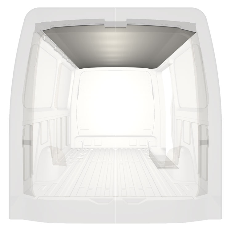 Lekka okładzina dachowa do modeli Mercedes Sprinter. Okładzina dachowa tworzy jasne, profesjonalne wykończenie wnętrza oraz przyjemne miejsce pracy.