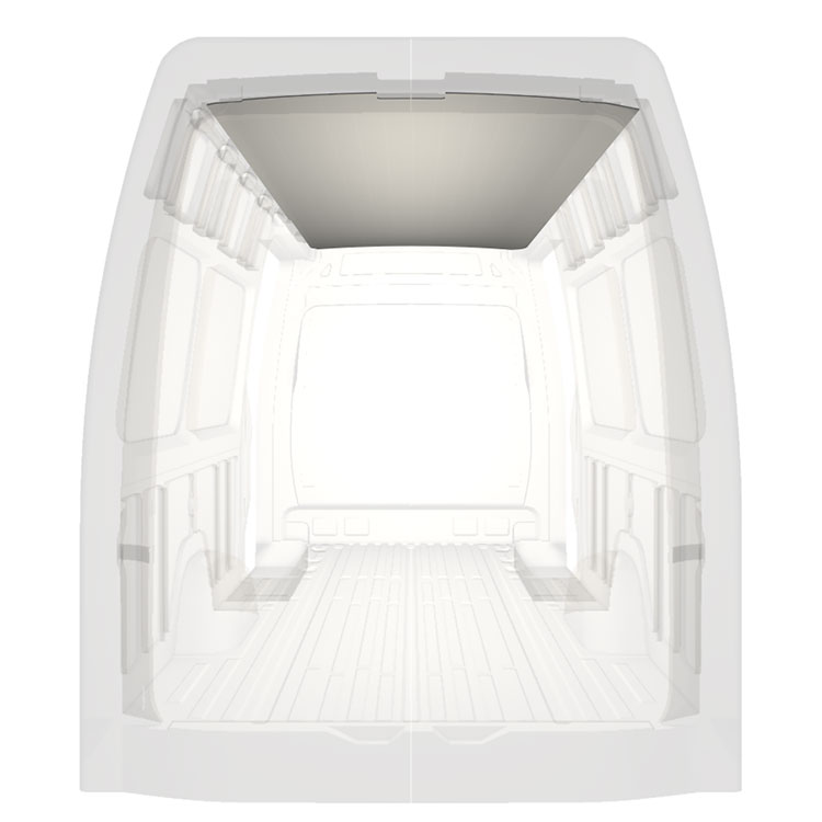 Lekka okładzina dachowa do modeli Mercedes Sprinter. Okładzina dachowa tworzy jasne, profesjonalne wykończenie wnętrza oraz przyjemne miejsce pracy.