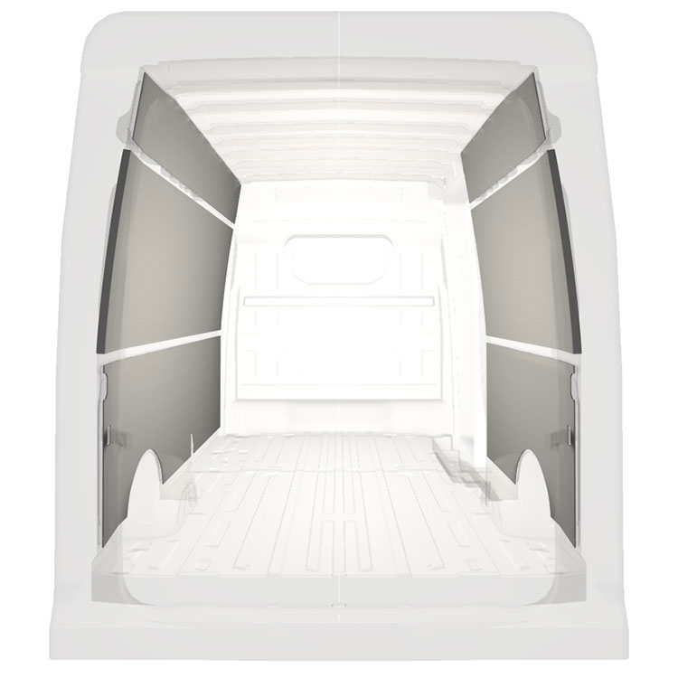 W celu optymalizacji masy, wycięte fabrycznie okładziny do samochodów dostawczych są dopasowane do przestrzeni między belkami pojazdu, co zapewnia ich nieinwazyjność oraz pozwala zmaksymalizować dostępną przestrzeń.