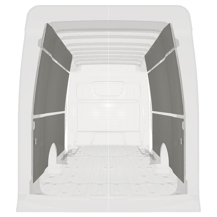 W celu optymalizacji masy, wycięte fabrycznie okładziny do samochodów dostawczych są dopasowane do przestrzeni między belkami pojazdu, co zapewnia ich nieinwazyjność oraz pozwala zmaksymalizować dostępną przestrzeń.