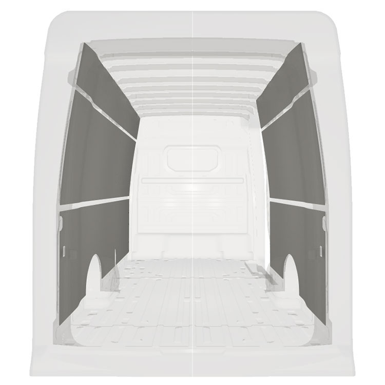 W celu optymalizacji masy, wycięte fabrycznie okładziny do samochodów dostawczych są dopasowane do przestrzeni między belkami pojazdu, co zapewnia ich nieinwazyjność oraz pozwala zmaksymalizować dostępną przestrzeń.