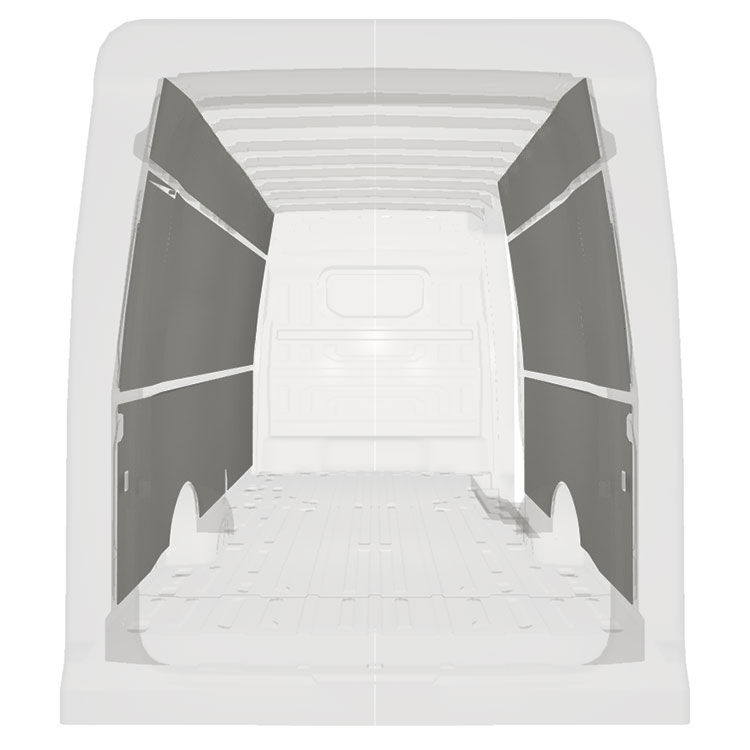 W celu optymalizacji masy, wycięte fabrycznie okładziny do samochodów dostawczych są dopasowane do przestrzeni między belkami pojazdu, co zapewnia ich nieinwazyjność oraz pozwala zmaksymalizować dostępną przestrzeń.