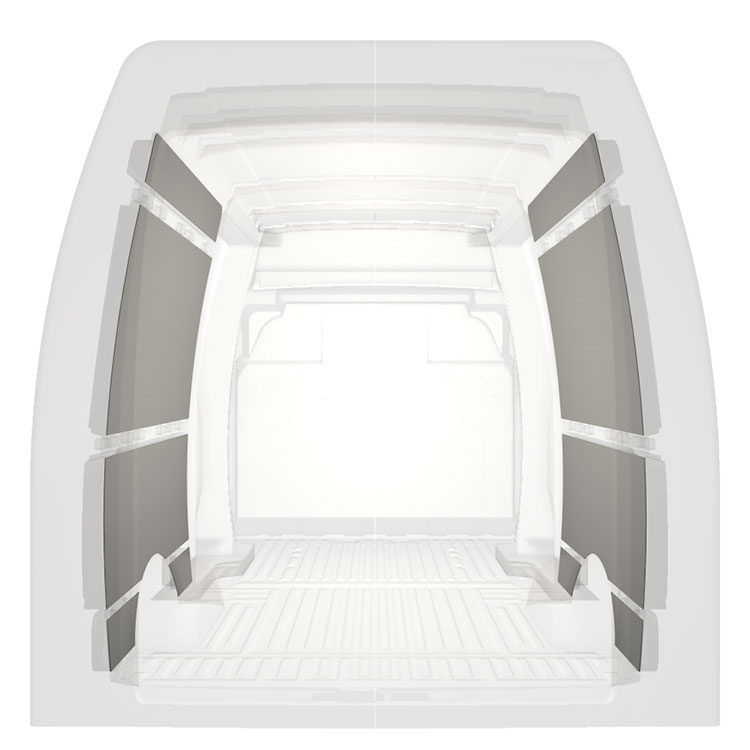 W celu optymalizacji masy, wycięte fabrycznie okładziny do samochodów dostawczych są dopasowane do przestrzeni między belkami pojazdu, co zapewnia ich nieinwazyjność oraz pozwala zmaksymalizować dostępną przestrzeń.