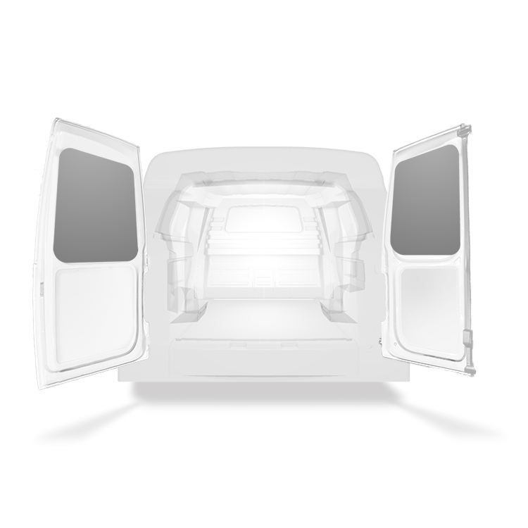 The rear door linings are designed and fabricated to fit in the sections of the rear door/tailgate of the vehicle to minimize weight. The liners protect the vehicle, create a bright working environment and are easy to wipe clean.