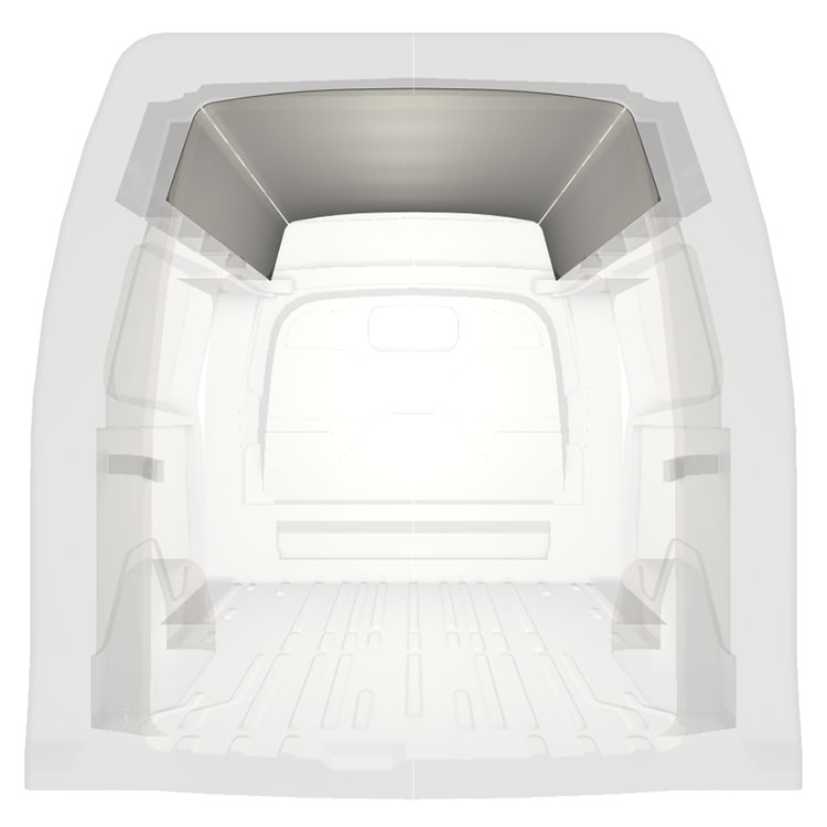 Lekka okładzina dachowa do modeli Ford Transit Custom. Okładzina dachowa tworzy jasne, profesjonalne wykończenie wnętrza oraz przyjemne miejsce pracy.