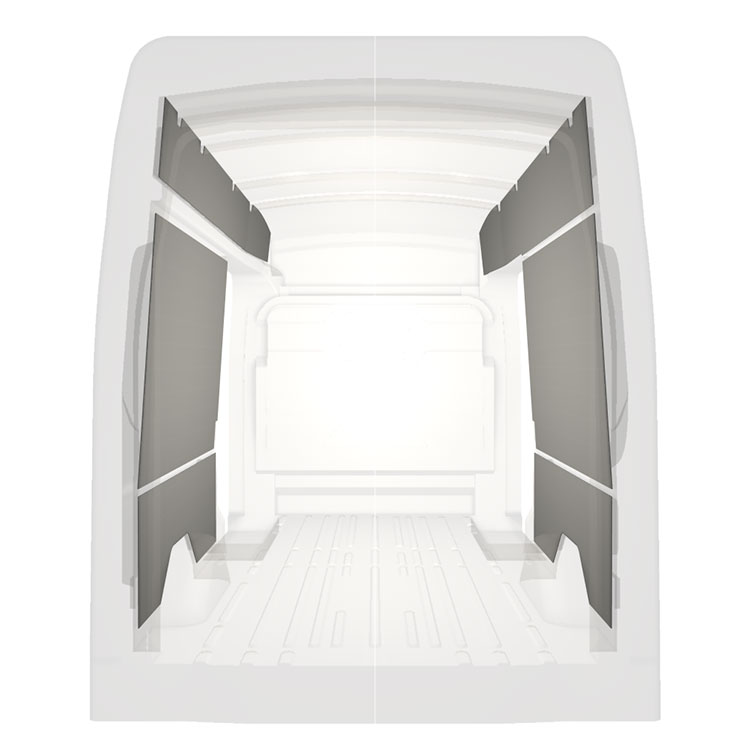 W celu optymalizacji masy, wycięte fabrycznie okładziny do samochodów dostawczych są dopasowane do przestrzeni między belkami pojazdu, co zapewnia ich nieinwazyjność oraz pozwala zmaksymalizować dostępną przestrzeń.