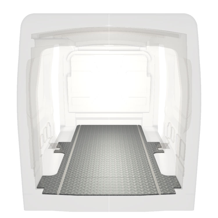 Lekkie i solidne, bardzo długie podłogi do samochodów dostawczych Ford Transit wyposażone w antypoślizgową aluminiową blachę ryflowaną i szyny na ładunek (wzdłużne) umożliwiające szybki i bezpieczny montaż systemów regałowych oraz innych akcesoriów.